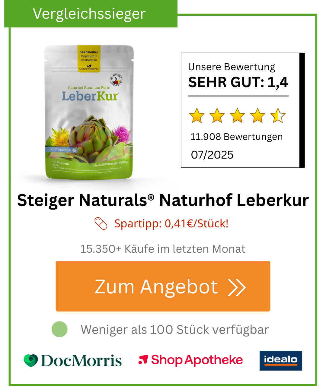 Die Zahlen sprechen für sich: Mit über 1 Million zufriedener Kunden ist sie Deutschlands beliebteste Leberkur. Die Verfügbarkeit in jeder deutschen Apotheke garantiert pharmazeutische Standards, die Billig-Importe nicht erreichen.